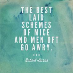 It was the Scottish poet Robert Burns. The title of his 1785 poem: To a Mouse. It was about a farmer who, through contemplation of not only his life but of all living things, felt remorse over destroying the home of a mouse while plowing the field in which the mouse lived. Some 150 years later, famous author John Steinbeck wrote a story about migrant workers during the Great Depression, based on Robert Burn’s famous line. The novel: Of Mice and Men, published in 1937.