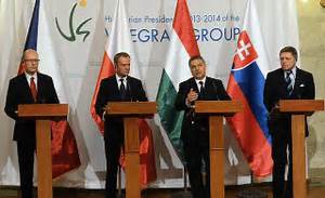 (Leaders & Flags of V4 Group, Left to Right: Czech Republic, Poland, Hungary, Slovakia)