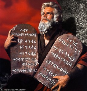 Answer: Ten Commandments. “When the Lord finished speaking with Moses on Mount Sinai, he gave him the two stone tablets inscribed with the terms of the covenant, written by the finger of God” (Exodus 31:18).