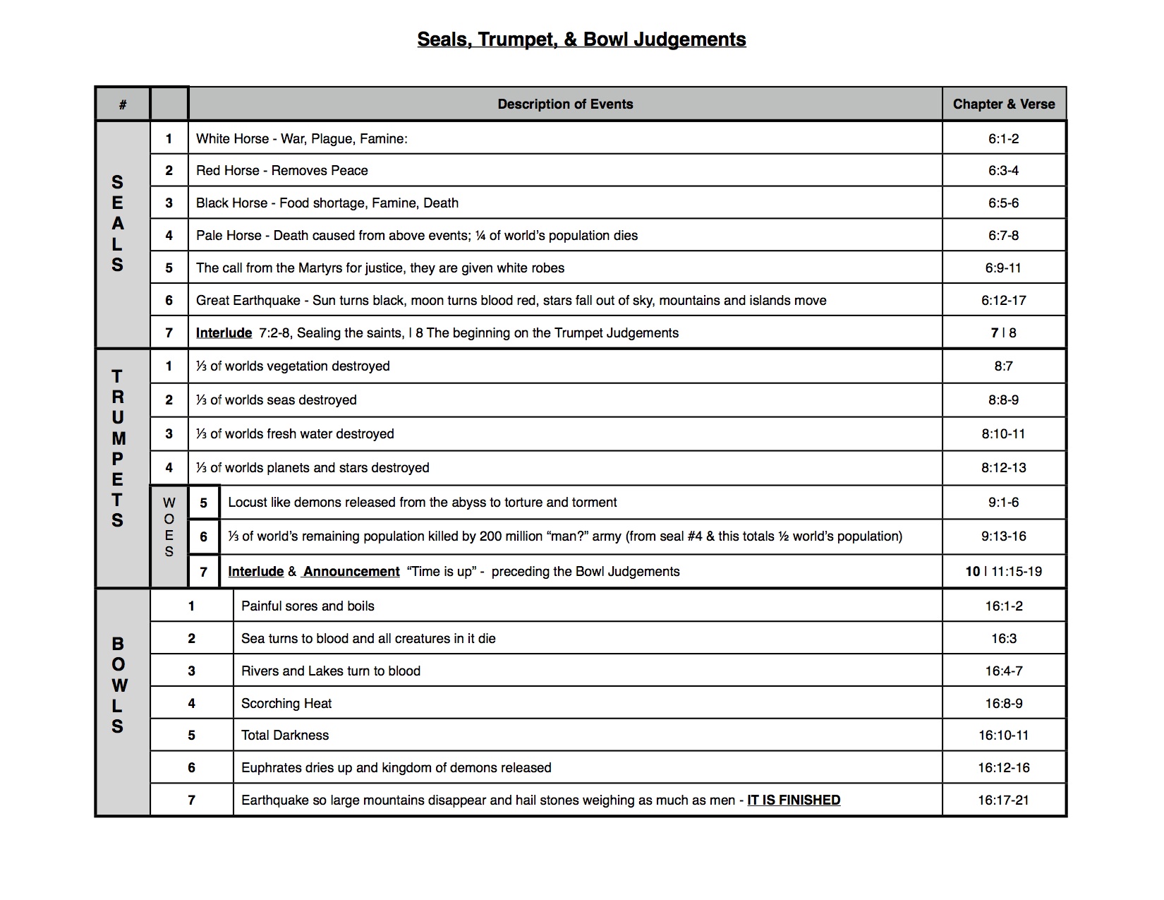 We want to focus primarily on the when, why, and who of these massive judgments. When will (spacing and timing) the twenty-one catastrophes occur … such as first half or second half of the Great Tribulation? Why (what is the overriding purpose) must they take place? Who will be affected the most?