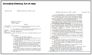 A reminder: The Congress of the United States—our governing body empowered to enact laws and make resolutions (with the Executive Staff obligated to enforce those laws, short of a Presidential veto)—passed the Jerusalem Embassy Act of 1995. Which resolved that Jerusalem is the eternal capital of Israel. There were seventeen reasons listed in that legislative act to support the resolution.