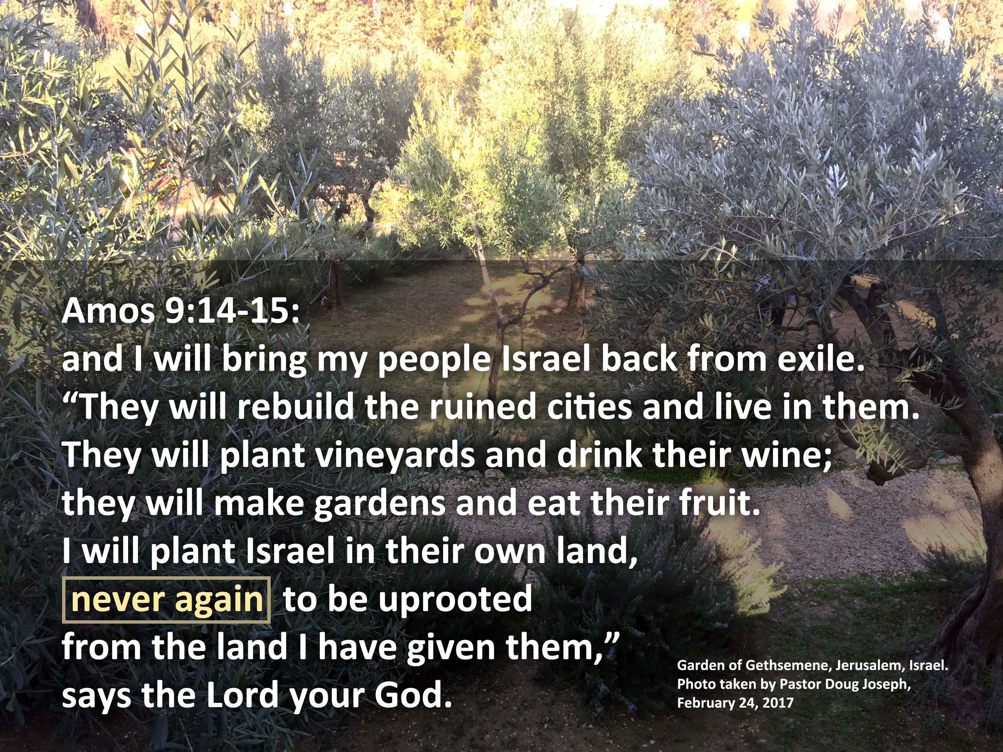 Scripture’s repeated predictions that Israel would be reestablished as a sovereign nation—with Jerusalem as its capital and return of exiled Jews to Israel—has taken place in our generation. And they have returned to stay, as exemplified in the following passage: