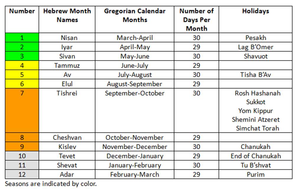 If you have a study Bible, the footnotes may sometimes identify the number of the month by its Hebrew name. In this case, the Hebrew month (ninth) is the month of Kislev, which overlaps parts of November and December on the Gregorian calendar. The first Jewish Biblical (religious) month is Nisan (March/April). Subsequently, the month of Tishrei (7th month of the religious calendar) became the first month of the civil year … Rosh HaShana (New Year Feast of Trumpets).