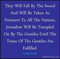 “But when you see Jerusalem surrounded by armies, then recognize that her desolation in near. Then those who are in Judea must flee to the mountains, and those who are in the midst of the city must leave … because these are days of vengeance, so that all things which are written must be fulfilled. Woe to those who are pregnant and to those who are nursing babies in those days; for there will be great distress upon the land and wrath to this people; and they will fall by the edge of the sword, and will be led captive into all the nations; and Jerusalem will be trampled under foot by the Gentiles until the times of the Gentiles are fulfilled” (Luke 21:20-24, NASB, italics for emphasis).