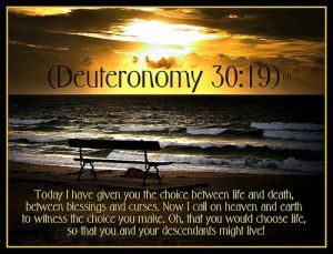 (The choice between life and death began in the Garden of Eden, continued with God’s chosen people in the above passage, still relevant today and will be extended throughout Eternity)