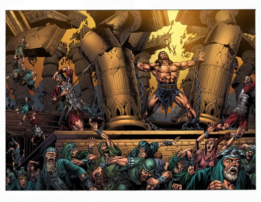 And Samson? An even easier answer: His supernatural strength to (for a time) bring an entire nation to its knees. Philistia—the Philistines, Israel’s archenemy. Until that is: he let Delilah cut his hair. Even then, the Lord returned Samson’s strength to him one last time. With each of his hands pushing against a pillar, Samson brought down a pagan temple, killing more Philistines as he died than when he lived.