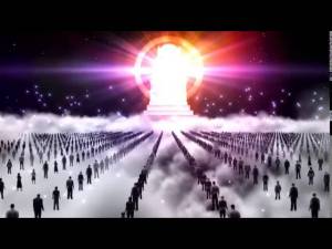 (In trying to depict believers ascending to heaven artists have inadvertently corrected the prevailing premise that the entire Rapture sequence will happen in the blink of an eye. Only the actual transfiguration will be that quick. Those left behind will hear and see the entire sequence of the Rapture)
