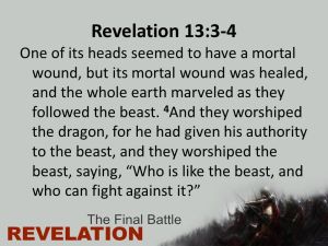 “The beast you saw was once alive but isn’t now. And yet he will soon (abruptly) come up out of the bottomless pit and go to eternal destruction. And the people who belong to this world … will be amazed at the reappearance of this beast who had died” (Revelation 17:8).