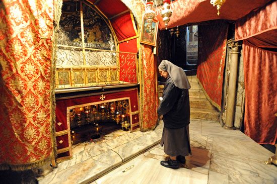 (Interior of Nativity Church, showing designated site of Jesus’ birth)