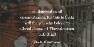 (It doesn’t say, be thankful “for” everything; rather “in” all circumstances)