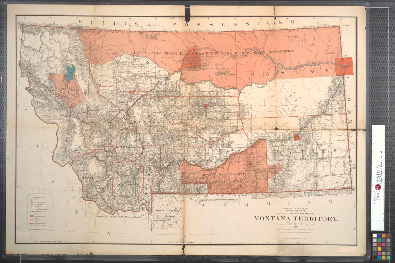 (Map of Montana Territory approved by President Lincoln in 1864. Montana later became a state in 1889)