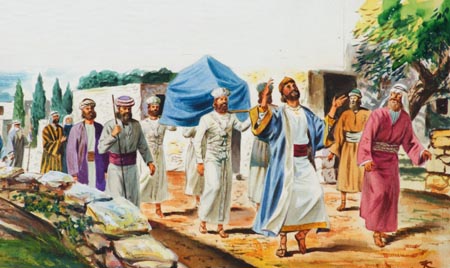 “When Jesus returned to Capernaum several days later, the news spread quickly that he was back home. Soon the house where he was staying was so packed with visitors that there was no more room, even outside the door. While he was preaching God’s word to them, four men arrived carrying a paralyzed man on a mat. They couldn’t bring him to Jesus because of the crowd, so they dug a hole through the roof above his head. Then they lowered the man on his mat, right down in front of Jesus. Seeing their faith, Jesus said to the paralyzed man, ‘My child, your sins are forgiven.’