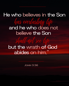 “For God so loved the world, that He gave His only begotten Son, that whoever believes in Him shall not perish, but have eternal life. For God did not send the Son into the world to judge the world, but that the world might be saved through Him. He who believes in Him is not judged; he who does not believe had been judged already, because he has not believed in the name of the only begotten Son of God. This is the judgment, that the Light has come into the world, and men loved the darkness rather than the Light, for their deeds were evil. For everyone who does evil hates the Light, and does not come to the Light for fear that his deeds will be exposed” (John 3:16-20, NASB).