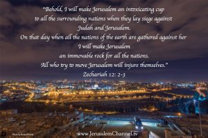 “On that day I will make the clans of Judah like a flame that sets a woodpile ablaze or like a burning torch among sheaves of grain. They will burn up all the neighboring nations right and left, while the people living in Jerusalem remain secure. The Lord will give victory to the rest of Judah first, before Jerusalem, so that the people of Jerusalem and the royal line of David will not have greater honor than the rest of Judah. On that day the Lord will defend the people of Jerusalem; the weakest among them will be as mighty as King David! …For on that day I will begin to destroy all the nations that come against Jerusalem” (Zechariah 12:6-9).